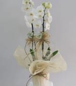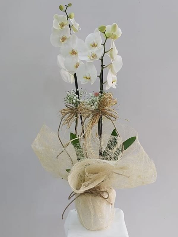 Kraft kağıda sarılı 1.sınıf ithal beyaz orkide kullanılarak hazırlanmaktadır.