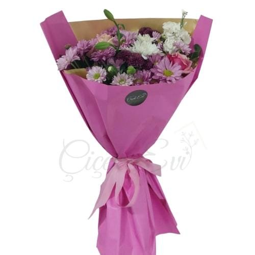 Vazo içerisinde kırmızı gül, beyaz papatyalardan oluşan