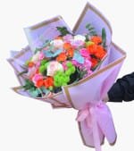 Vazoda kırmızı,beyaz,turuncu,pembe ve lila güller ile hazırlanan Colorful Love Roses