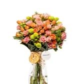 Beton tasarım saksı içerisinde turuncu çardak gülleri ve ayçiçeğinden oluşan derlemedir. Stil sahibi çiçeklerin adresi tarzcicek.com
