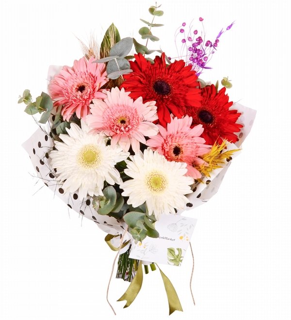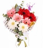 Siyah Çizgili Polimer Vazoda Karışık Çiçekler