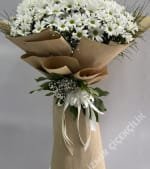 Paşabahçe vazo içerisinde ithal beyaz papatyalar ( Kır Çiçekleri) ile hazırlanmaktadır...